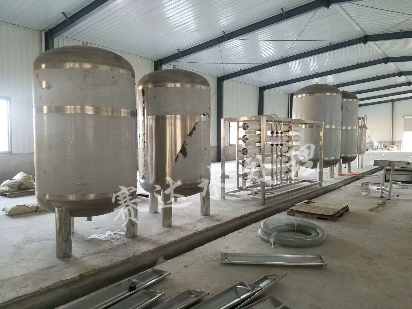 2、預處理系統(tǒng)一般包括原水泵、加藥裝置、石英砂過濾器、活性炭過濾器、精密過濾器等。其主要作用是降低原水的污染指數(shù)和余氯等其他雜質,達到反滲透的進水要求。